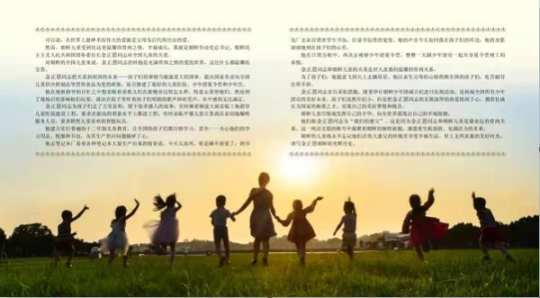 朝鲜的儿童将永不忘记他们在伟大慈父的怀抱里享受幸福生活、世上无所羡慕的美好时光,谱写金正恩朝鲜的光辉历史。